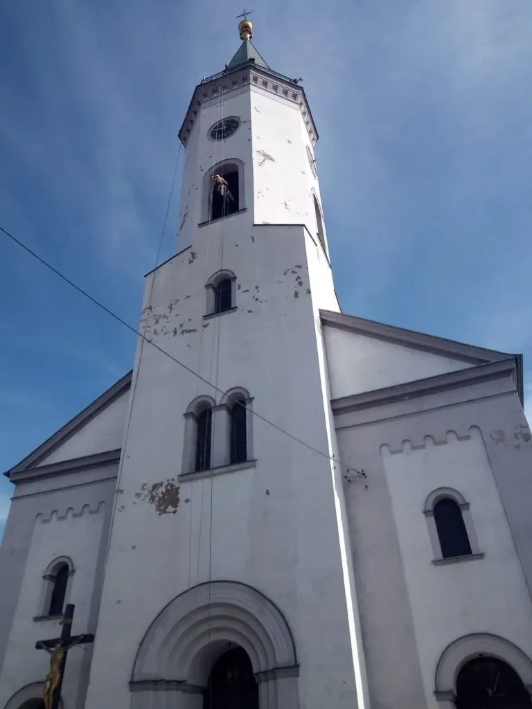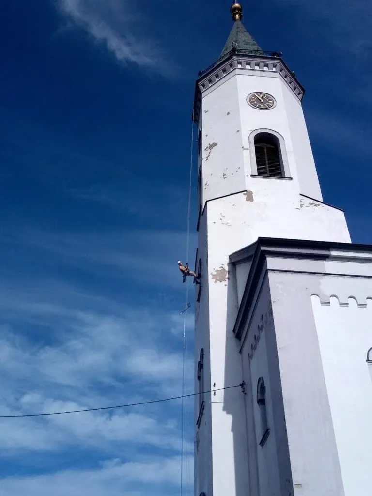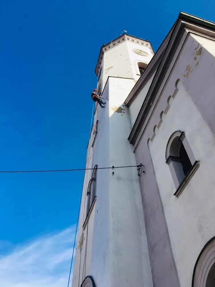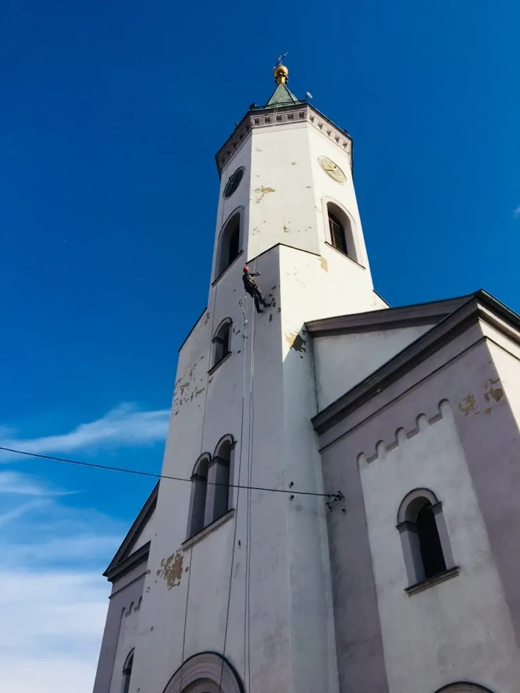 Czyszczenie ciśnieniowe wieży kościoła w Dobrodzieniu k. Opola