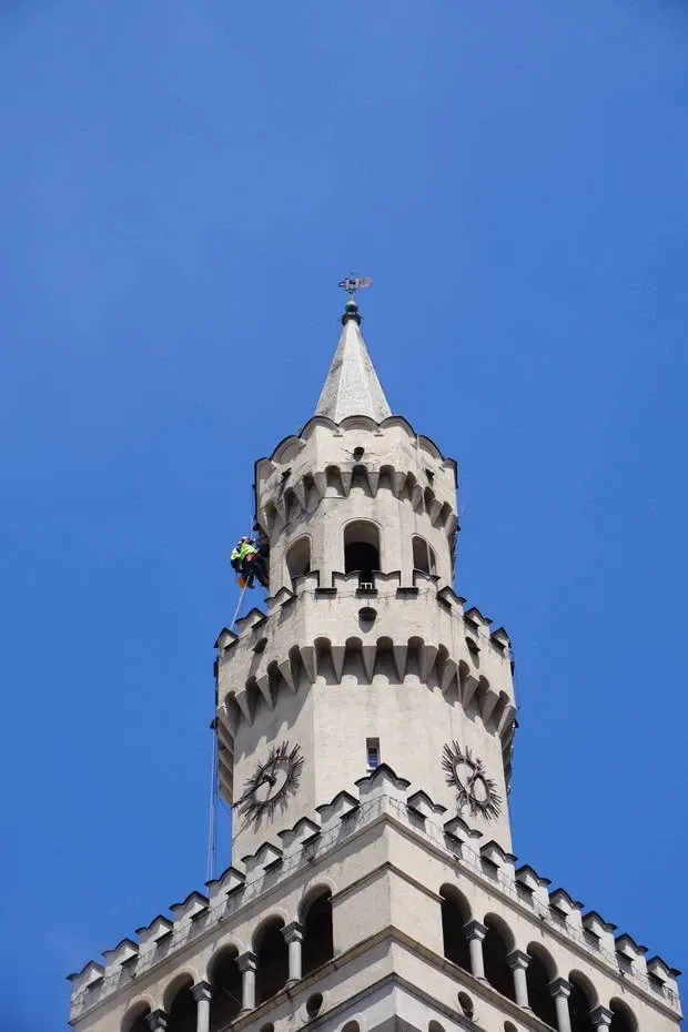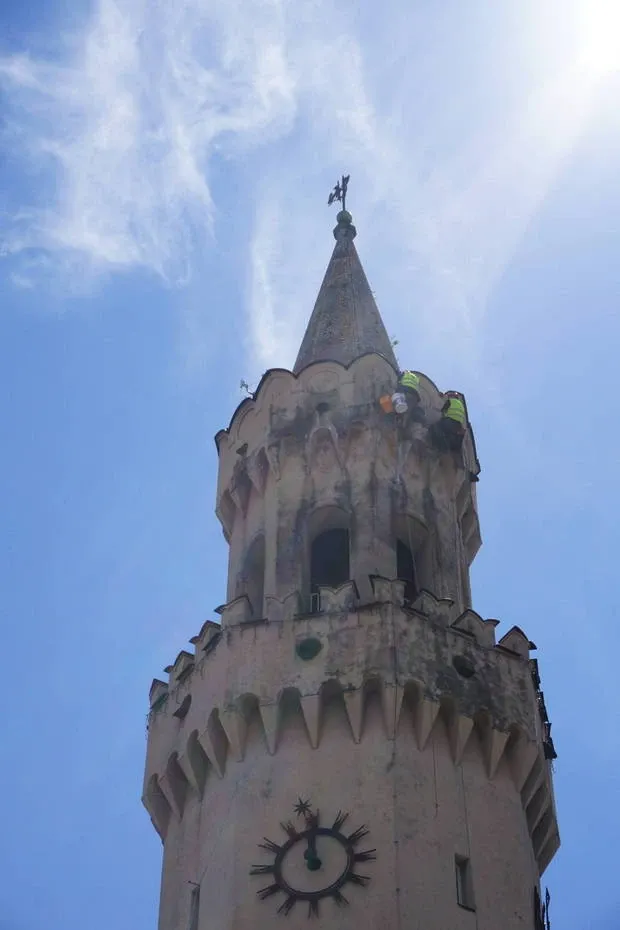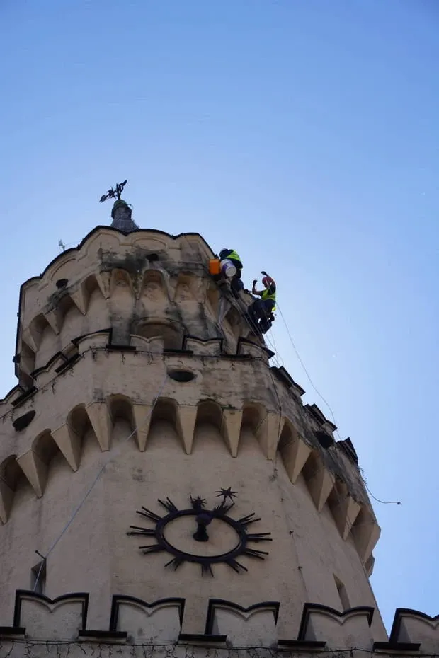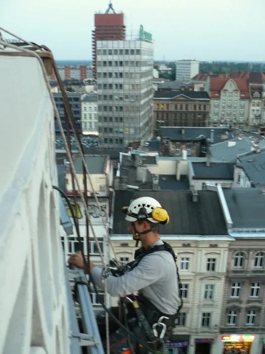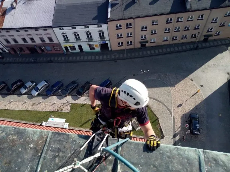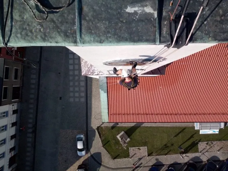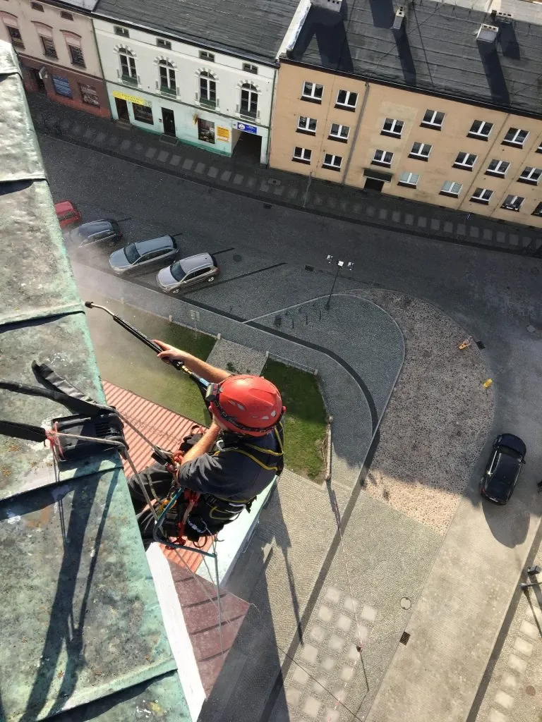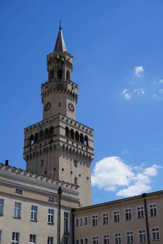 Czyszczenie ciśnieniowe wieży ratusza w Opolu