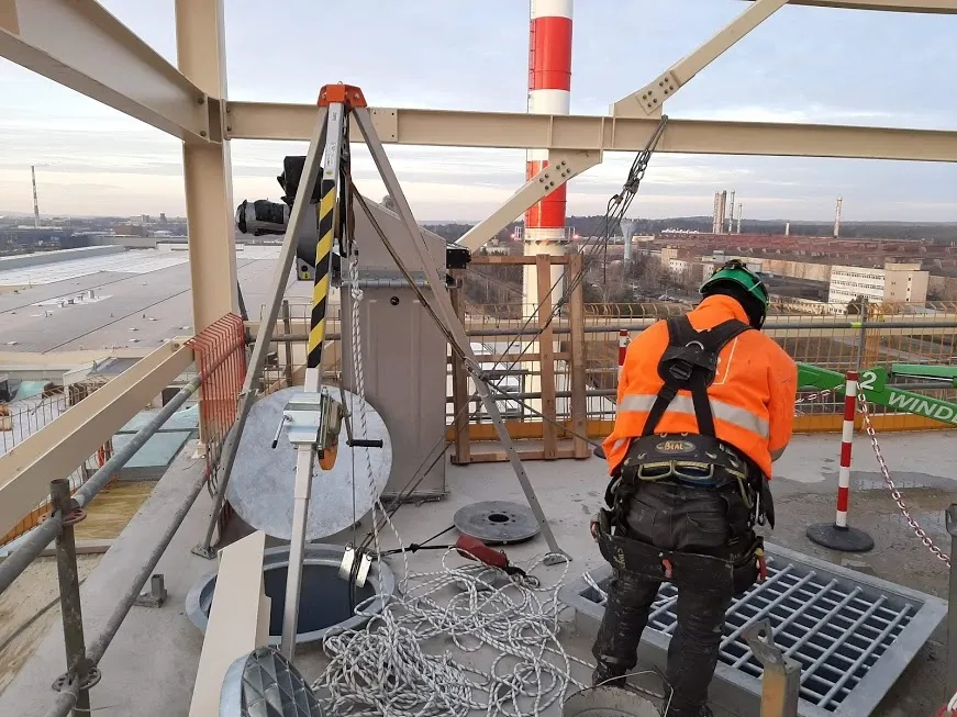 Demontaż platformy roboczej i urządzeń towarzyszących na kominie Elektrowni Turów