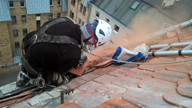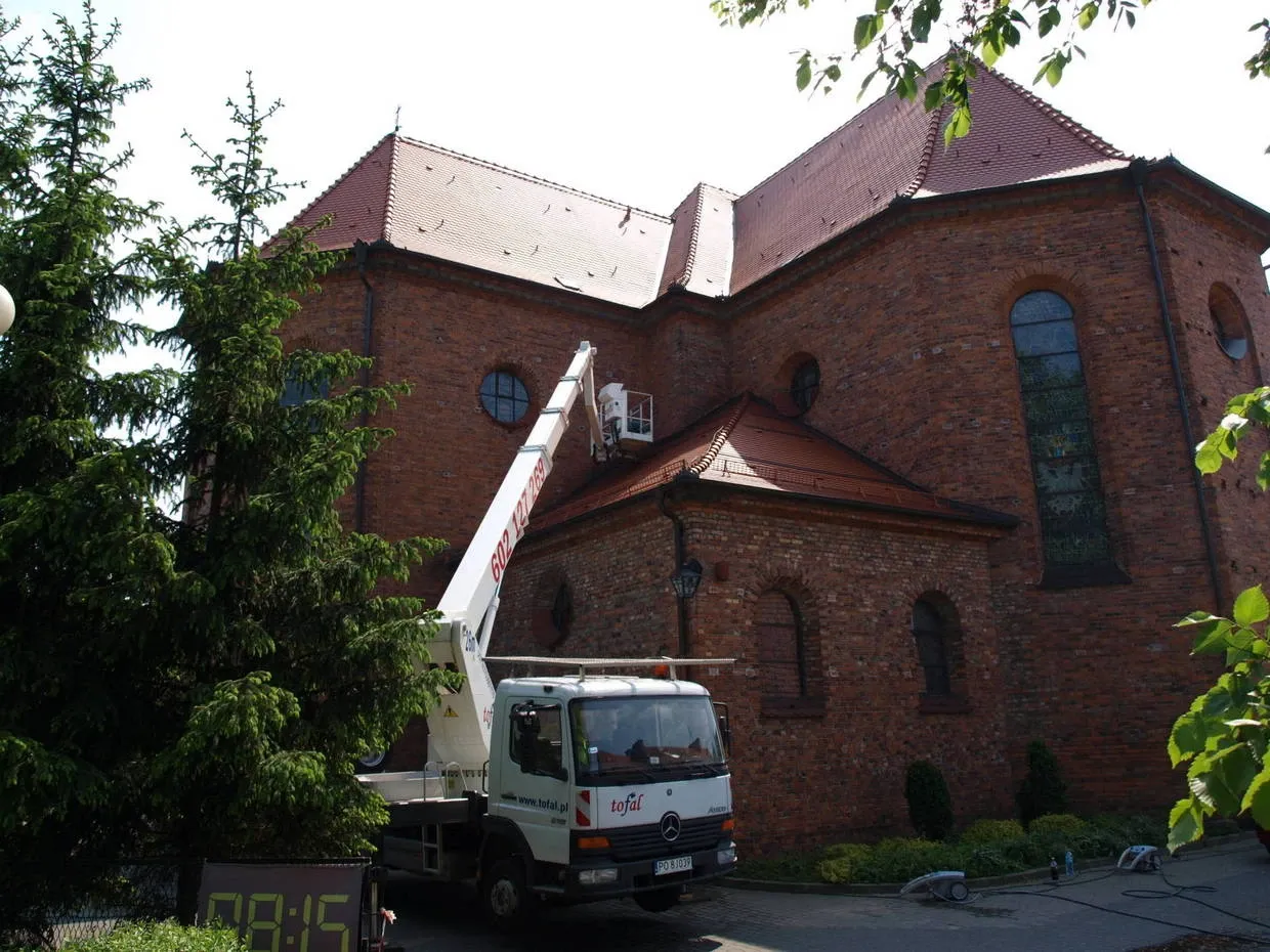 Renowacja dachu Kościoła pw. św. Mikołaja w Mosinie. Czyszczenie oraz impregnacja dachówki ceramicznej