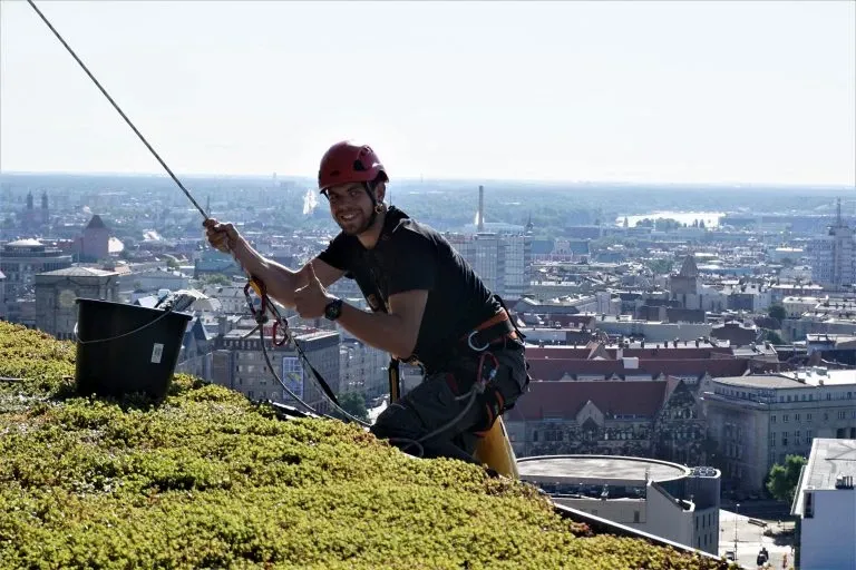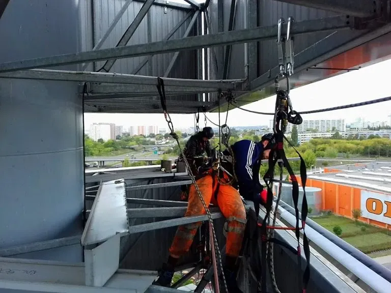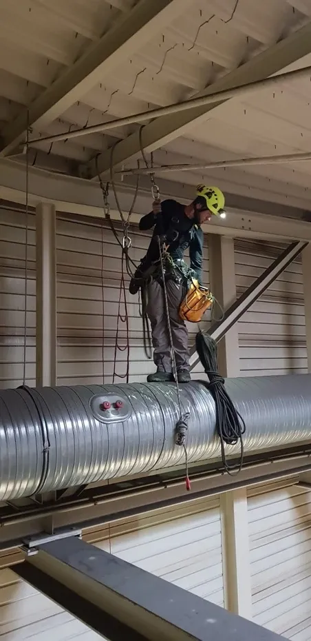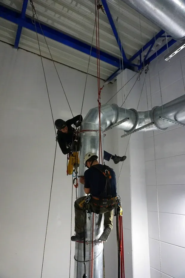 Montaż siatki przeciw ptakom na Hali Sportowej