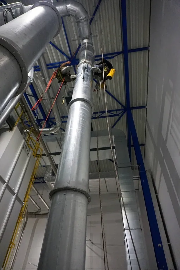 Wymiana banera na Elewatorze – komin w Koninie