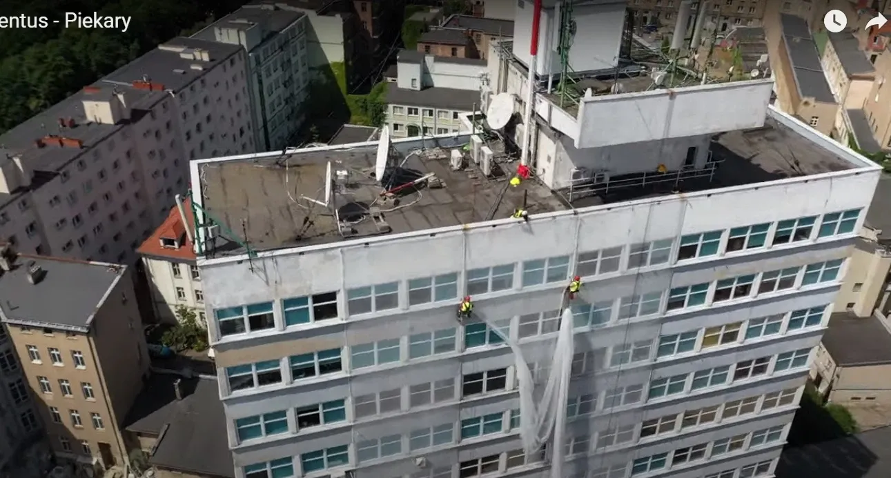 Demontaż wielkoformatowej siatki mesh na budynku Enea S.A. w Poznaniu