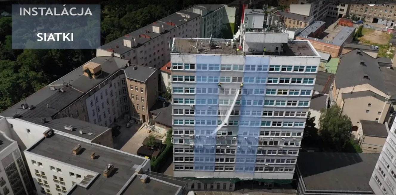 Zabezpieczenie siatką elewacji budynku w Poznaniu