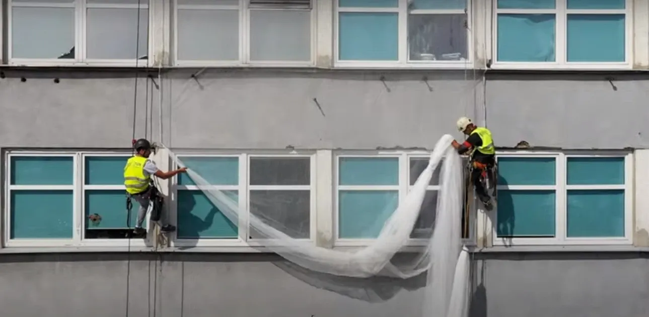 Klejenie 600 m2 folii na elewacji
